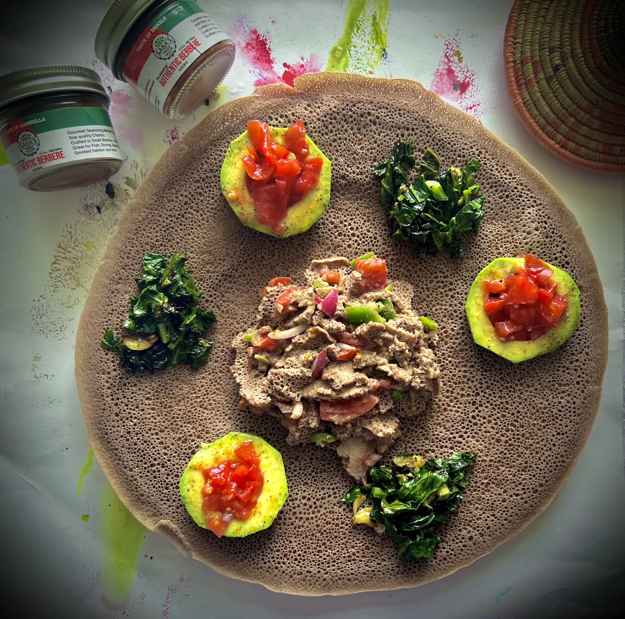 3. In a medium bowl, add all ingredients except injera bread and refrigerate for 20min.